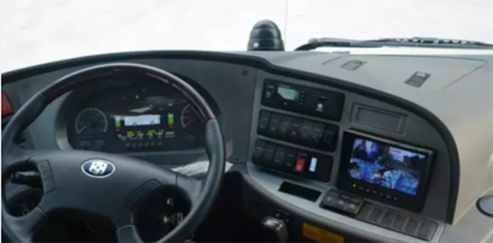 公交車輛由于其特殊的使用用途,需要頻繁開關車門、上下乘客,而且通常是存在前后兩個車門。為了防止發生安全事故,一般會在前后車門位置各安裝一只攝像頭。儀表盤上的顯示屏可以顯示攝像頭傳送過來的下車門位置的乘客信息,方便司機開關門。下圖為一款公交車儀表盤照片,司機正視方向顯示屏顯示車輛電池電量等內部參數,右側顯示屏顯示下車門位置的攝像頭監控畫面。