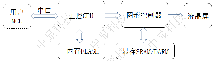 由串口、主控CPU、內存FLASH、圖形控制器、顯存SRAM/DARM等基本電路功能構成。