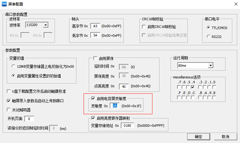 SDWb、SDWa系列串口屏支持用戶自行設(shè)置電容觸摸屏靈敏度功能。