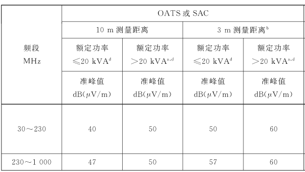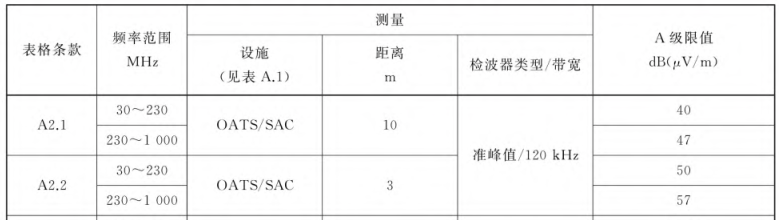 圖2 1組A類設(shè)備的電磁輻射騷擾限值要求