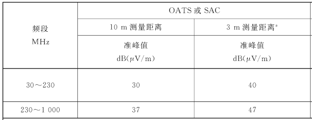 圖4 A級(jí)設(shè)備輻射發(fā)射限值
